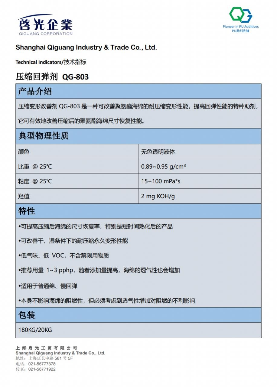 聚氨酯海绵压缩回弹剂 qg-803